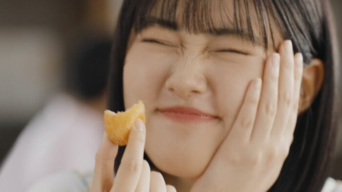 原:一口サイズなんで食べやすそうですね。撮影終わりとかに、現場の皆さんと一緒に食べるのがいいなって思いました。サイズ感がすごく食べやすいので、みんなでつまみながらっていうのがいいなって思いますね。