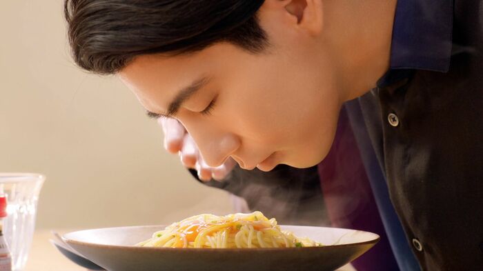 この新TVCM「『ほんだし®』釜玉パスタ」篇では、「ほんだしⓇ」を使ったアレンジレシピ「だし香る釜玉パスタ」を口にした賀来さんが、「一度でいいから食べてほしい」とそのおいしさを熱く語ります。
