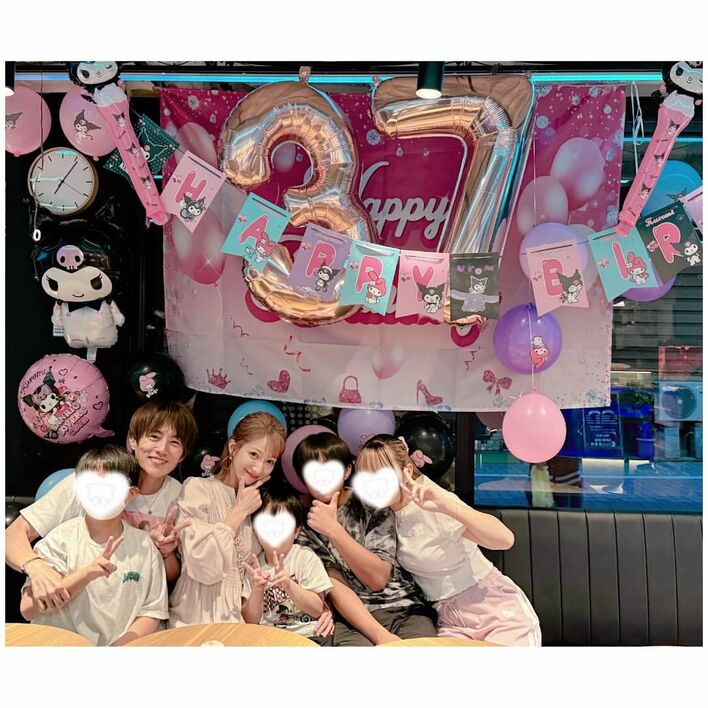 部屋は、誕生日を迎えた年齢の「37」の大きな数字の風船に加え、サンリオの人気キャラクター「クロミ」の風船が飾られた華やかな空間になっていました。