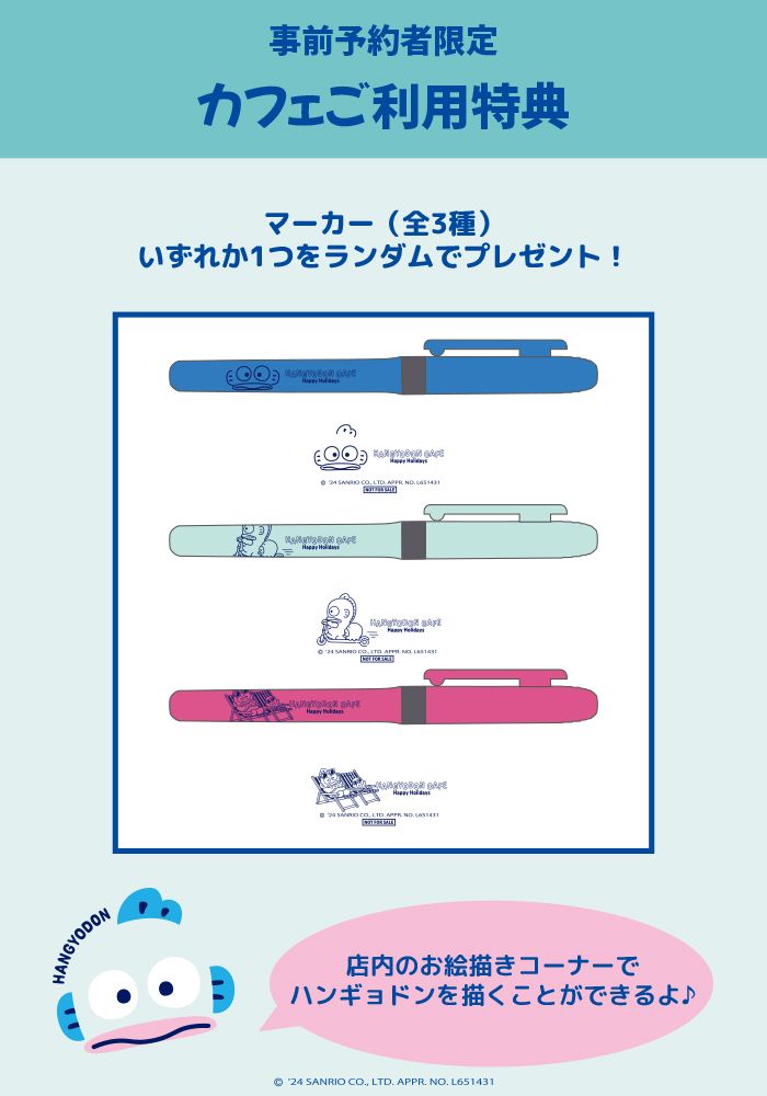事前予約でカフェを利用すると、限定特典で「マーカーペン(全3種)」をランダムで1種プレゼント!