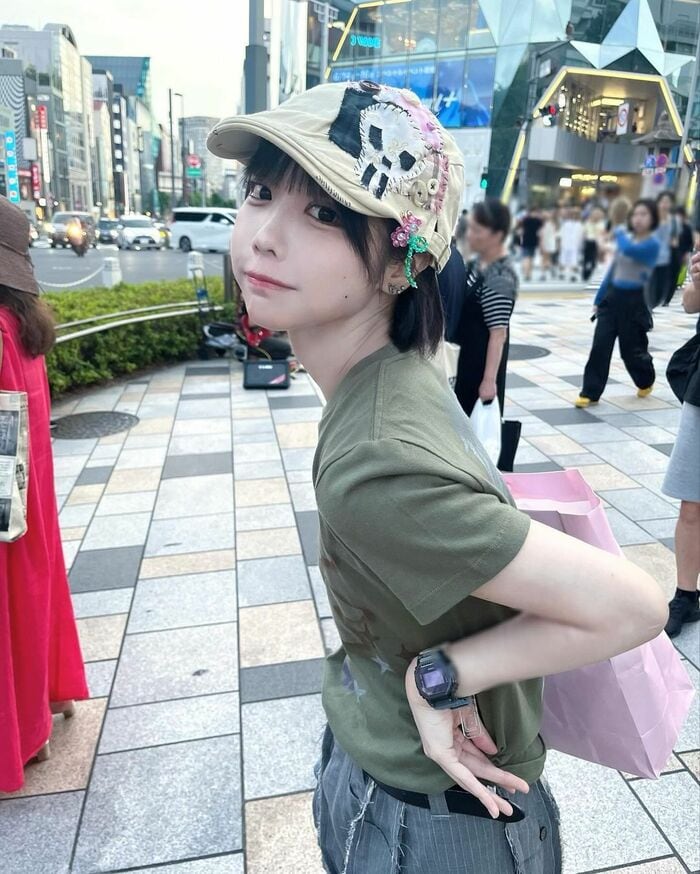 あのさんは、「僕服 どっちが好き?」というコメントと共に、東京・原宿で帽子を被り、カーキ色のTシャツにストライプ柄のパンツを履きボーイッシュなスタイルの写真を公開しました。