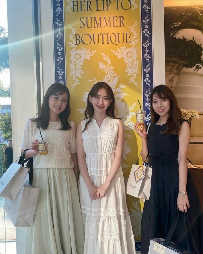 久慈さんは小嶋陽菜さんのブランドの店舗を訪れたことを報告し、カメラに向かって微笑む久慈さん、小嶋さん、小野寺さんの3ショットを公開しました。