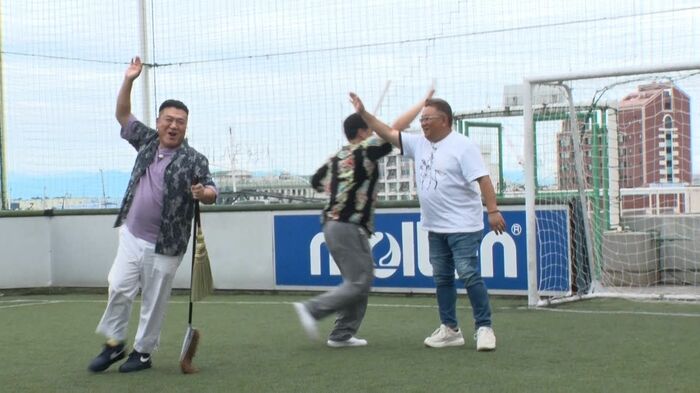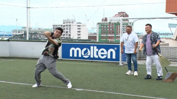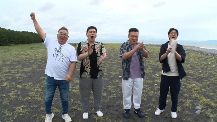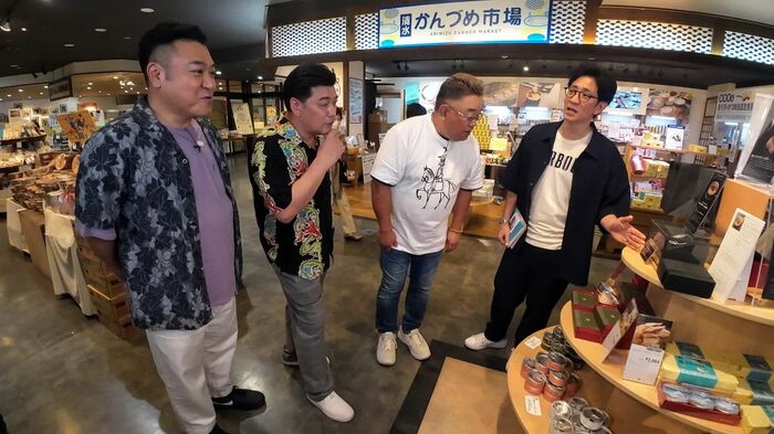 グルメだけにとどまらず、地元のショッピングモールで大勢のお客さんを前に即興営業をしたり、たまたま見つけた1000円ガチャをしてみたり、柴田さんが小学生のときに遊んでいたという、ピンポン玉野球を4人でやってみたり…と、とにかくはしゃぎ、ボケまくってツッコミまくる笑いどころ盛りだくさんの旅となります。