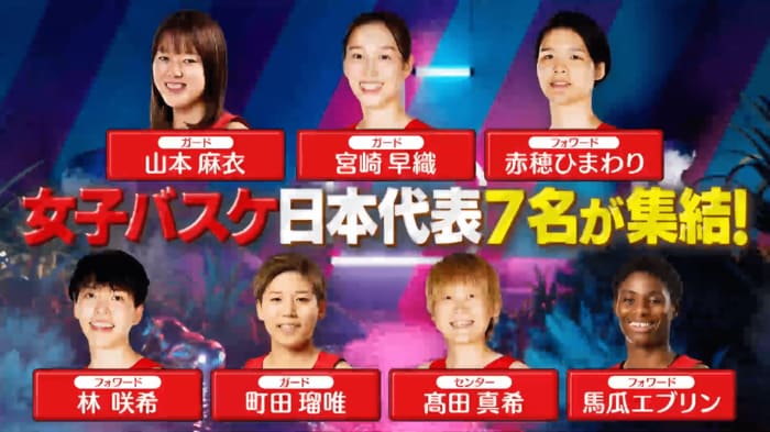 今回登場したのは、髙田真希選手、町田瑠唯選手、馬瓜エブリン選手、林咲希選手、宮崎早織選手、赤穂ひまわり選手、山本麻衣選手の7人。