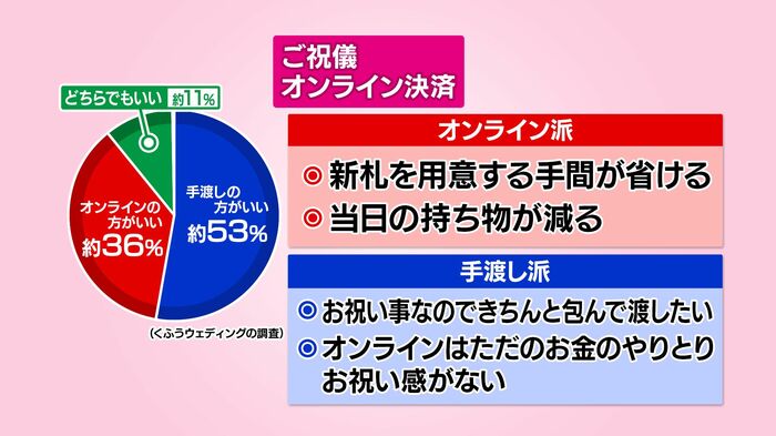 竹山さんは「便利でいいけど、ご祝儀袋で手渡したい」と主張しましたが、披露宴の受付をしたことがあるという鈴木さんは「ご祝儀をくれた人のリストを作って金額を確認したりと、管理がめちゃくちゃ面倒なので、主催者側は助かる」と訴えました。