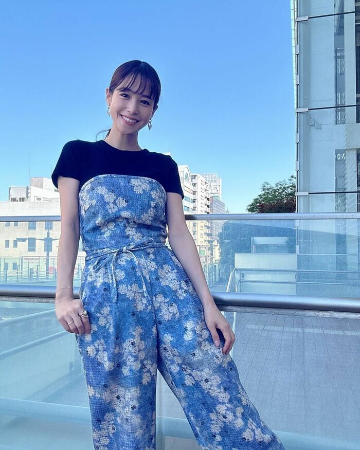2024年4月に第1子出産を報告したばかりの鷲見さんは、「たまには私服」というコメントと共に、私服ショットを公開。写真には、ブルーに白の花柄が描かれたオールインワンを着用し、笑顔で映る鷲見さんの姿が。