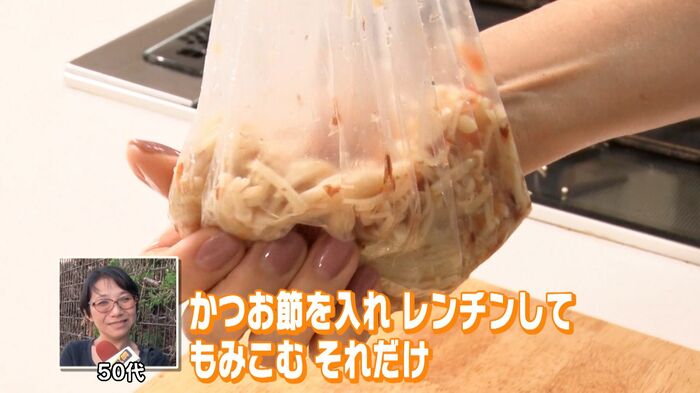 続いて50代女性が教えてくれたのは「エノキの梅肉蒸し」の作り方。