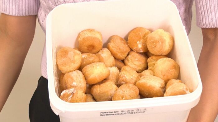 SNSで「おいしすぎて足りん」「手が止まらん」などと話題になっている、大きな白いボックスに入った、プチシュー。