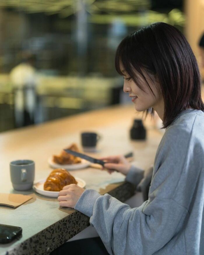 おしゃれなカウンターで、コーヒーを片手にクールなおすまし顔を見せる山本さん。投稿では「世界一と称されるクロワッサンのお店へ行った」とオーストラリアの旅を楽しんだ様子を明かしました。