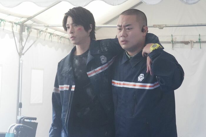 雲田彩(出口夏希)から避難者は全員無事だったと聞かされるが、上野はどうなったのか問う晴原。そして上野が横になっている仮設テントに向かい、彼女の手に触れるが力なく落ちていく。