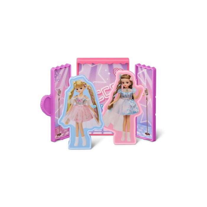 アイドル衣装のリカちゃんと、つばさちゃんとステージをイメージされたような背景スタンドがセットになった『リカちゃん キラメキアイドルステージ』や…。