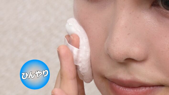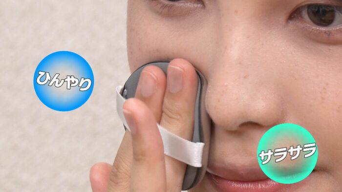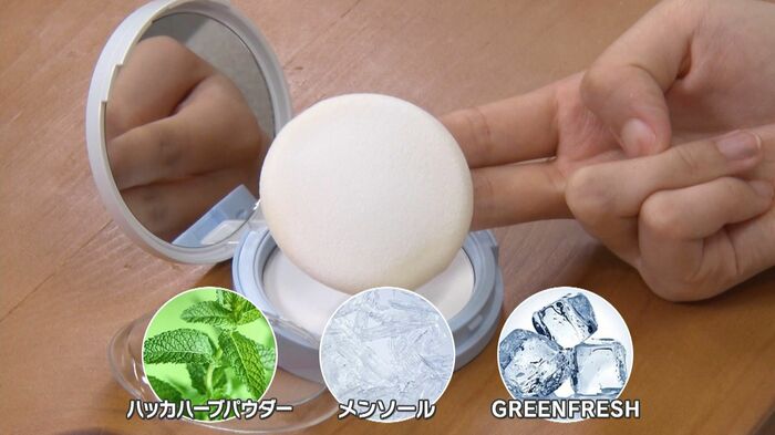メントールが配合されたひんやりタッチパウダーのため、肌に塗ると、冷たく感じられます。