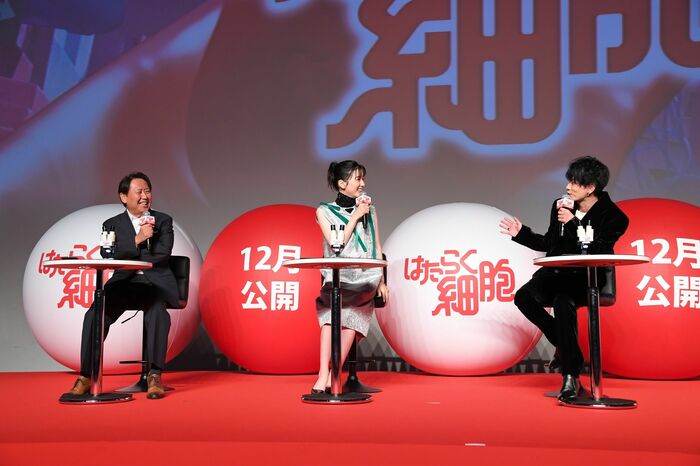 さらに佐藤さんは、「原作漫画を読んでとにかくこの世界観に惚れてしまって。逆にこの役を演じなかったら、俺は今まで何をしていたんだと。この役を演じるため頑張ってきたんだなと思いました。佐藤健の集大成です!」と、白血球(好中球)役への並々ならぬ思いを熱弁。