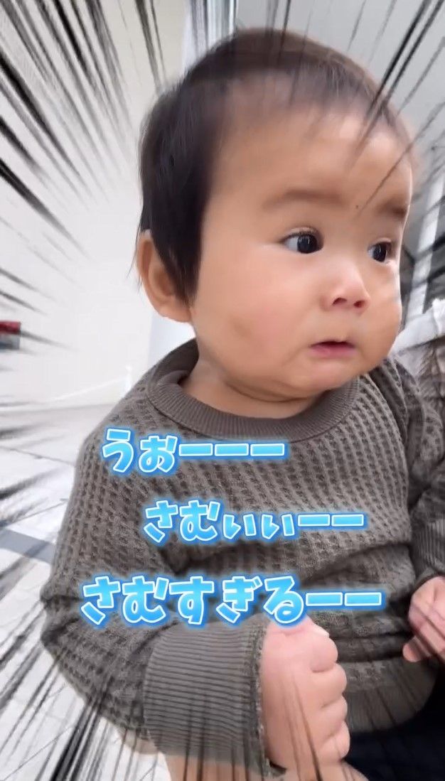 11カ月の赤ちゃんが寒すぎて驚く表情に「舞台役者もビックリ」