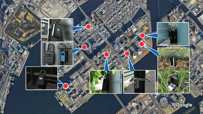 併せて12個もの“謎のキーボックス”が電柱やフェンスなどに設置されていました。