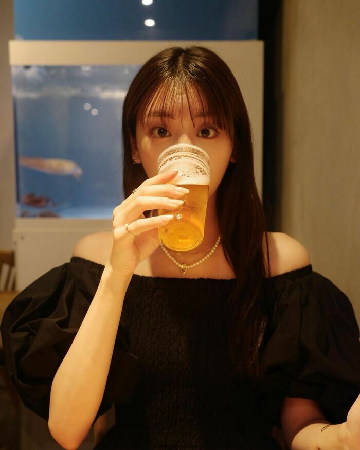 ビールをカメラ目線でおいしそうに飲む様子などが公開されています。