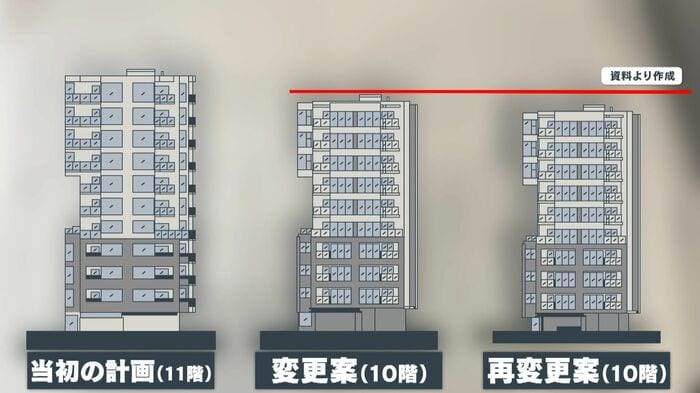 積水ハウス側が、住民説明会で配ったマンション建設に関する資料を見てみると、当初は11階建てにする計画でしたが、検討の末、10階建てに変更。