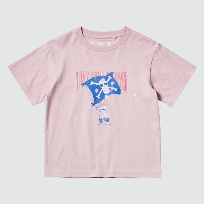子ども用には、ピンク色のTシャツにチョッパーが大きく描かれたデザインなど、計5種類のキャラクターが描かれています。