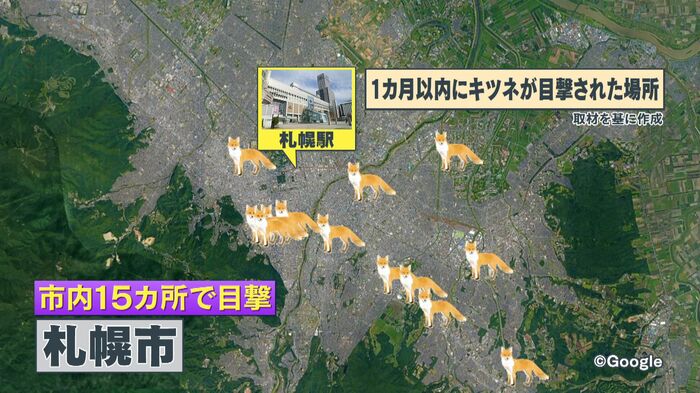 『めざまし8』が取材したところ、この1カ月ほどの間で、少なくとも市内15カ所でキツネの目撃情報がありました。