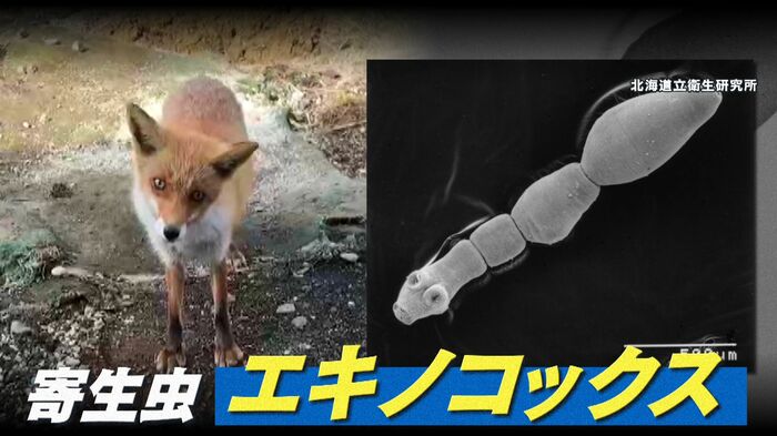 「エキノコックス」とはキツネなどに寄生する寄生虫。
