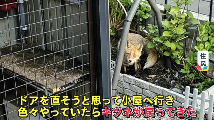 キツネは体当たりでニワトリの小屋を破壊。中のニワトリ1羽が犠牲になりました。