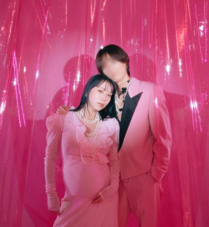 現在、第1子を妊娠中のタナカガさん。投稿された写真には、ピンク色の世界観に包まれながら白い服を着て、ふっくらとしたおなかに手を添えるタナカガさんにそっと寄り添う夫の姿も。