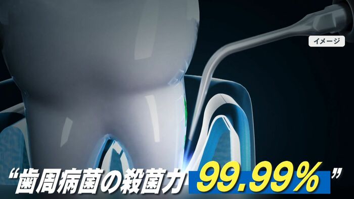 世界に先駆け日本のベンチャー企業が開発し、2024年1月から販売が開始。歯周病菌の殺菌力は驚きの99.99%だといいます。