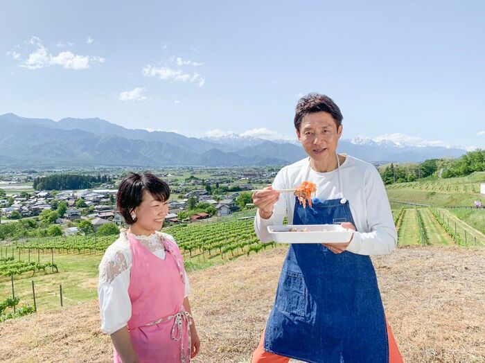 海外からも料理教室を依頼されるという料理研究家・戸練ミナさんに、長野県安曇野市の青空が広がる開放感ある屋外で“スペシャル”な料理を教わることになった松岡さん。