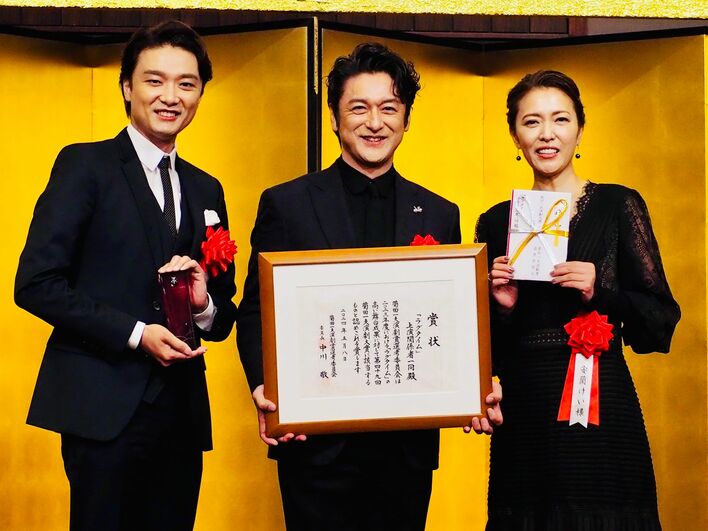授賞式にはカンパニーを代表し、石丸さん、安蘭さん、井上さんが登壇しました。