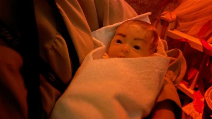 恐怖の瞬間!妖怪の目の前に、泣いている赤ちゃんが!
