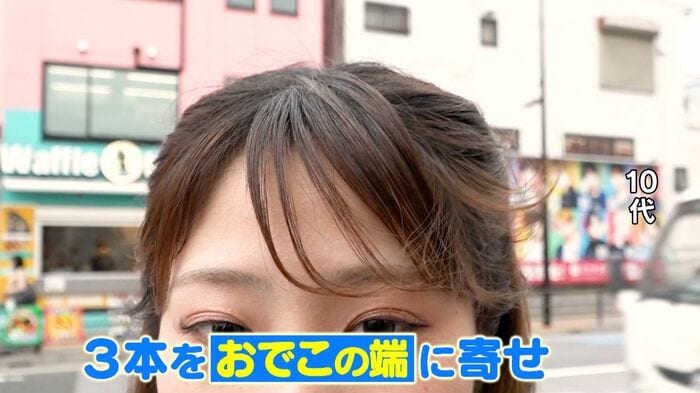 3本の前髪を、おでこの端に向かって寄せる“端寄せスタイル”!