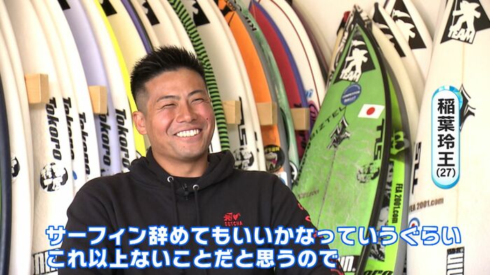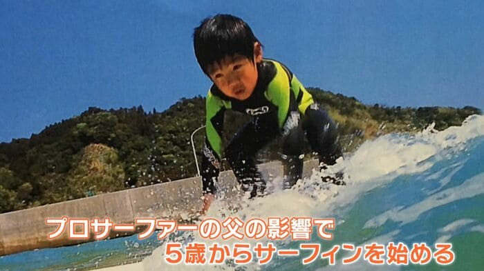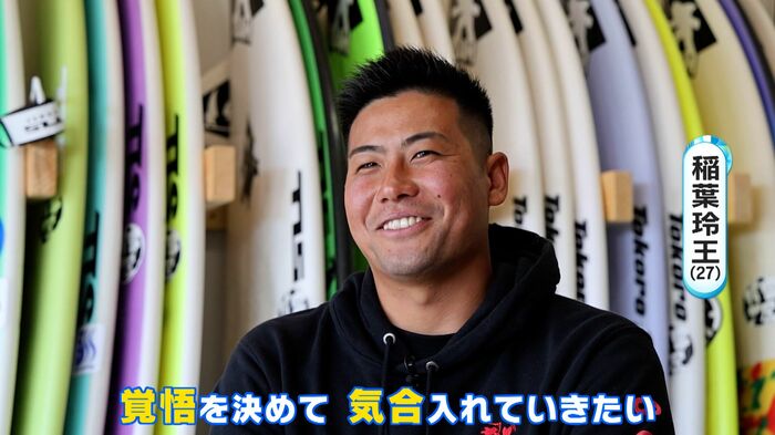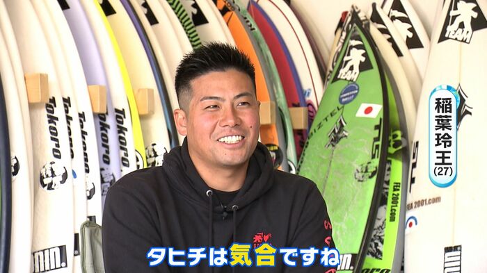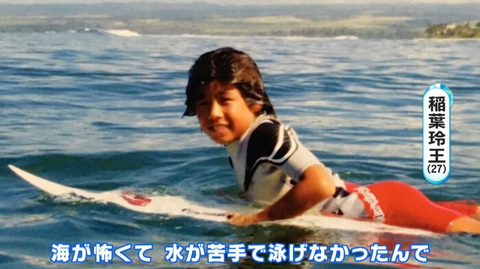 日本有数のサーフスポットとして知られる千葉県一宮町で生まれた稲葉選手はプロサーファーである父の影響で5歳からサーフィンを始めました。