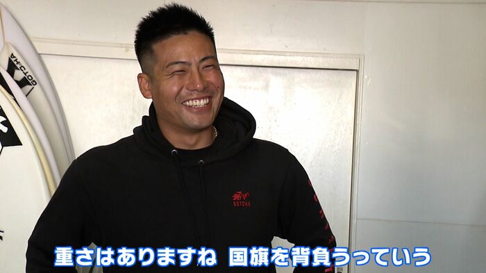 「重さはありますね。国旗を背負うっていう」と、国旗の重みを感じていたのは、大きなしぶきを上げるダイナミックなパフォーマンスを武器に国内外の大会で好成績を残してきたサーフィンのパリオリンピック代表・稲葉玲王選手。