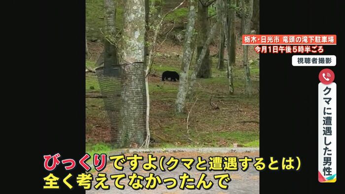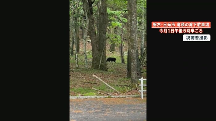 2024年6月1日、栃木県日光市にある観光名所のひとつ、「竜頭の滝」のすぐ近くにある駐車場で林の中を動くクマが撮影されました。