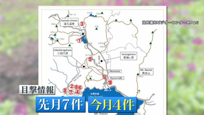 奥日光では クマの目撃情報が相次いでいて、5月は7件、6月もすでに4件の情報が寄せられています。