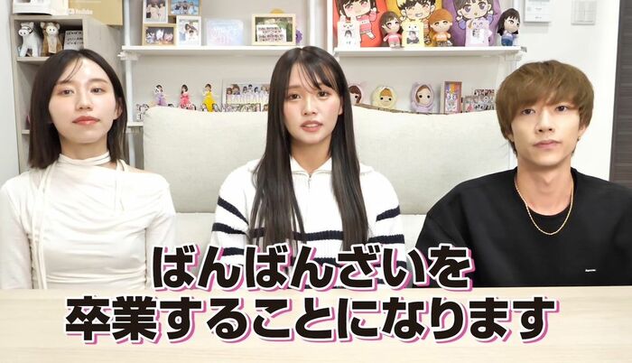 また、グループから離れることについては「今後もばんばんざいを頑張りたい!って気持ちはずっとあったんですけど、今のままだと自分の体調も込みで、今後全力で私自身がばんばんざいに対して挑めるかってなると、正直100%の確率で出来るって言えなかったってのがあって、けじめをつけて、卒業という形を取らせてもらいました」と話しています。