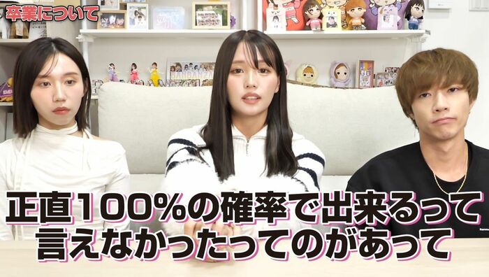 るなさんが卒業することについて、みゆさんは「いっぱいぶつかったりもして、話し合った結果がこれなので、3人の意見は合致しています」と、たくさん話し合いの上の結果であることを説明。
