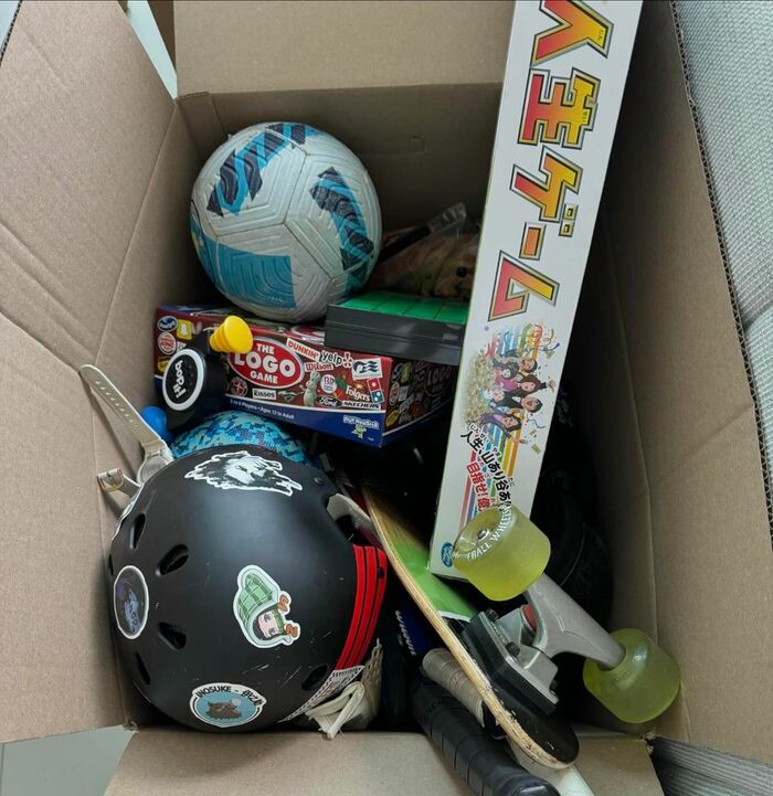 さらに、「2枚目はサヨウナラするモノ達」には、段ボールの中に、人生ゲームやボール、スケートボートなどが!