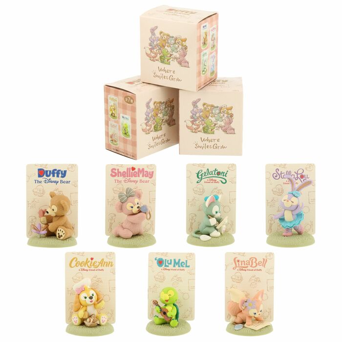 また、今回の「ウェア・スマイルズ・グロウ」のストーリーにちなんで、きれいなお花を見つけるダッフィーなど、ダッフィー&フレンズの7人それぞれがみんなのために何かをしてあげようとする様子がモチーフになっているミニチュアフィギュアを販売します。