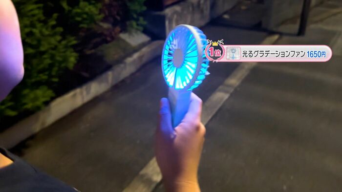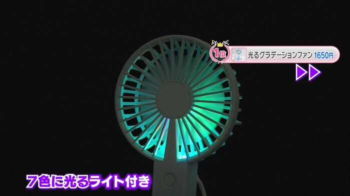 おなじみのスタンド付き「ハンディファン」に、七色に光るライトが付いた最新アイテム!