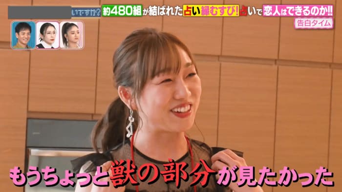 須田さんは「どうしよう、どうしよう」と慌てながらも「ごめんなさい!」と、2人ともお断り。リリーさんには「告白が嫌でした。笑いに逃げてる感じがして」、紫藤さんには「もうちょっと獣の部分が見たかった」と告げました。