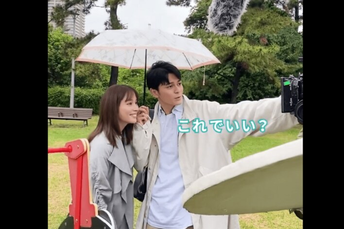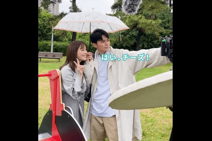 公式Xでは、明日香と遥斗がある公園で自撮りをするシーンのオフショット動画が公開されています。