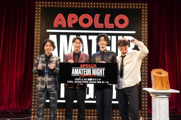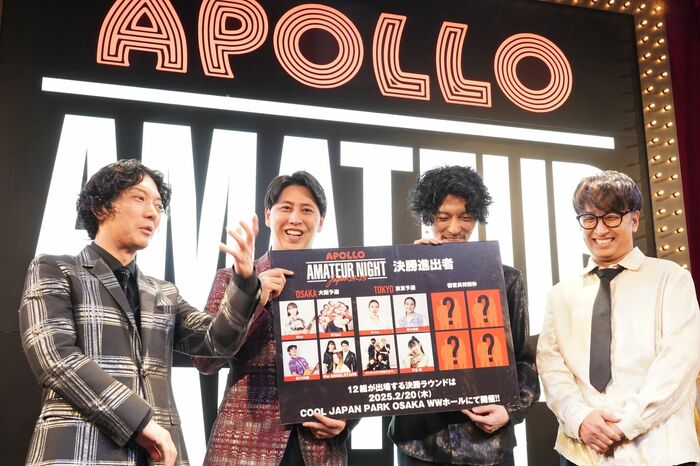 『APOLLO アマチュアナイトジャパン24-25 予選ラウンド東京』が、12月16日(月)と17日(火)の2日間、渋谷・duo MUSIC EXCHANGEで開催されました。MCのニューヨーク(屋敷裕政さん、嶋佐和也さん)とエグスプロージョン(おばらよしおさん、まちゃあきさん)が見守る中、戸辺葵さん、鈴木莉愛さん、ゼロから打ち師始めます。さん、Erinaさんの4組の決勝進出が決定。イベント後にはニューヨークさんとエグスプロージョンさんが囲み取材を行い、その激闘を振り返りました。