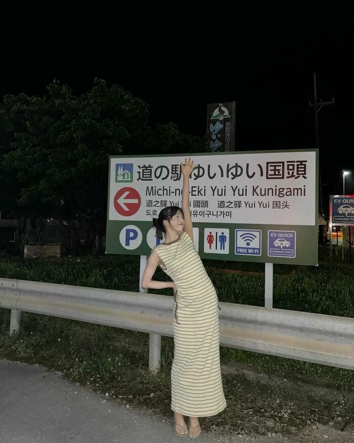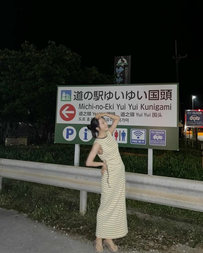 AKB48小栗有以さんが2024年6月1日に自身のインスタグラムを更新。沖縄県にある道の駅前でのショットを投稿しました。