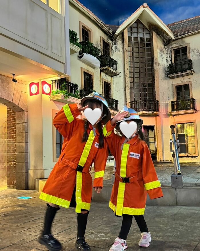 近藤さんは「今週は家族でキッザニアに遊びに行ってきました」というコメントと共に、娘2人が消防士などの制服を着て職業体験をしている写真を公開。キッザニアには前にも行ったことがあるようで、「いろんな職業体験ができて前行った時はミウ(次女)がまだ小さくて一緒にできなかったのに2人で同じ職業体験ができて感動してしまいました 「可愛い。。。」が止まらない親。笑」と娘の成長に感動したことを明かした近藤さん。
