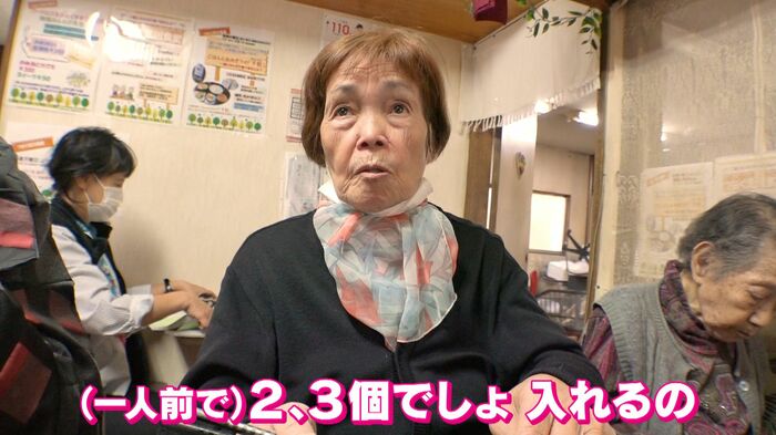 かぼちゃ入れるって言ったって、半分買ったって。(一人前で)2、3個でしょ?入れるの。そんな思いするんだったら、(食堂は)こんなに安くてありがたい。だからここへ来ようねって。