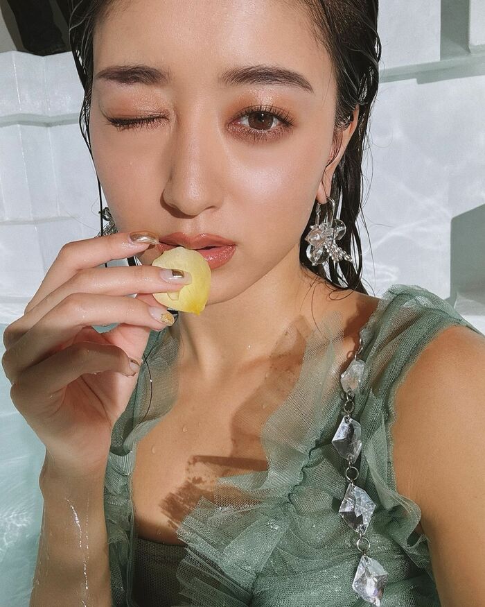 みちょぱ 透け感ある水着でカメラにウィンク!プールでの撮影で「もちろんびちゃびちゃ」