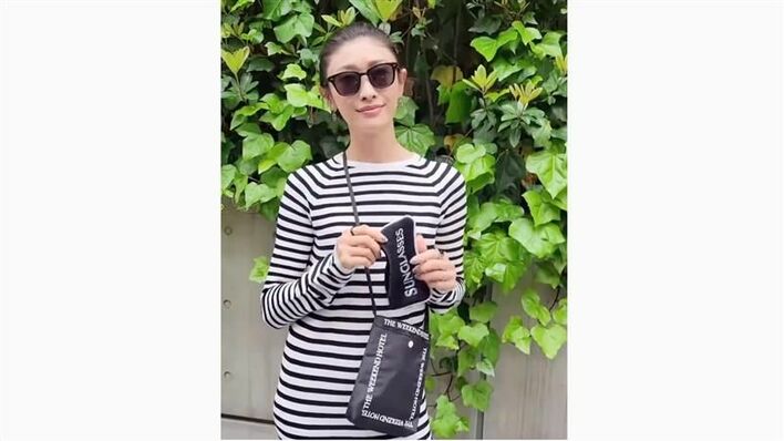 身につけていた黒のポシェットから、サングラスを出し、実際にかけてみる場面も。