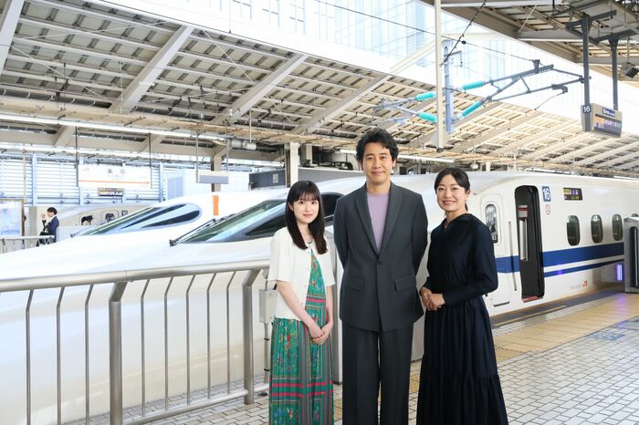 劇中に新幹線が登場するということで、『めざましテレビ』の密着は、東京駅の新幹線のホームからスタート。