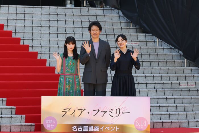 映画『ディア・ファミリー』で、坪井家親子を演じた大泉洋さん、菅野美穂さん、福本莉子さんが、「最初で最後!?家族旅行」をテーマに、作品の舞台となった名古屋でイベントを行いました。